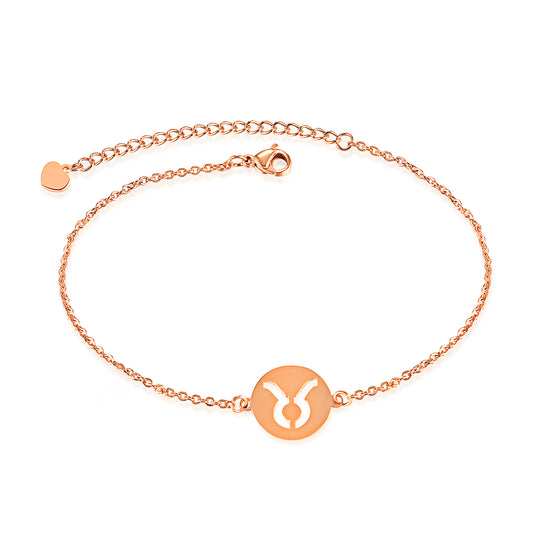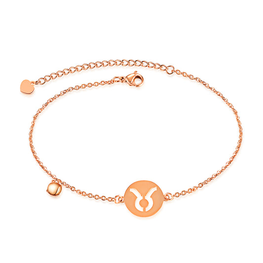 Golden 12 Constellation Zodiac Charm Anklet Female Women 100% Stainless Steel High Polished Charm Anklet