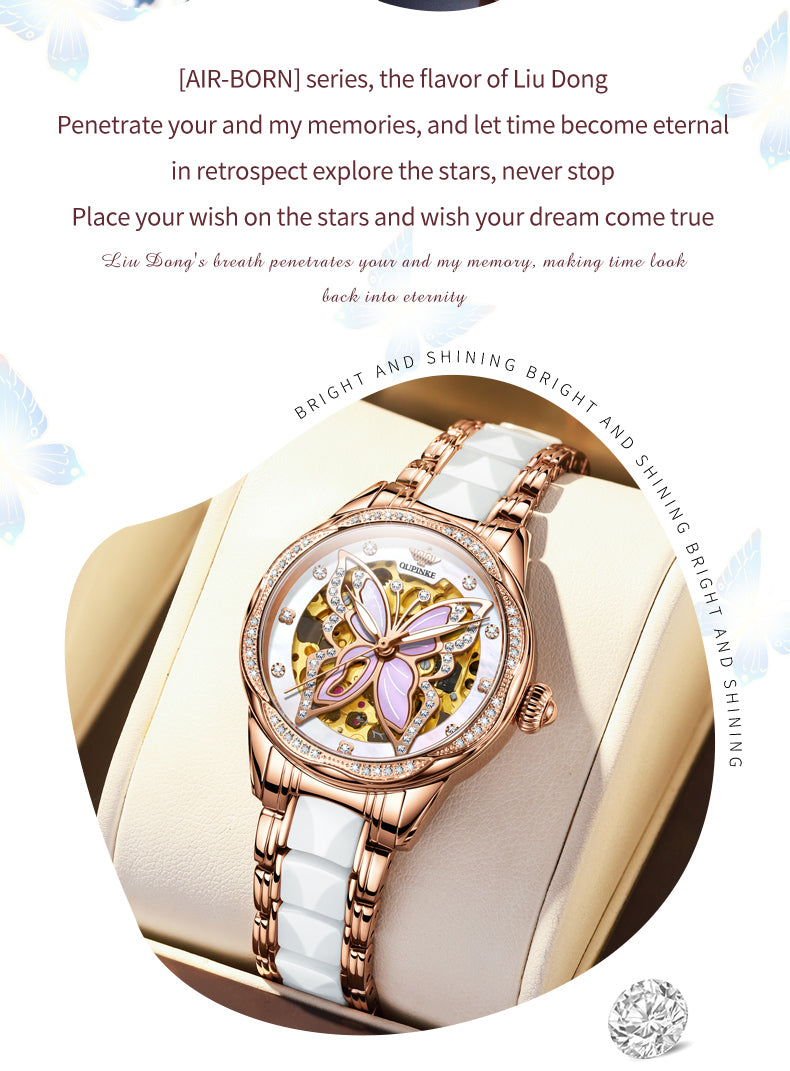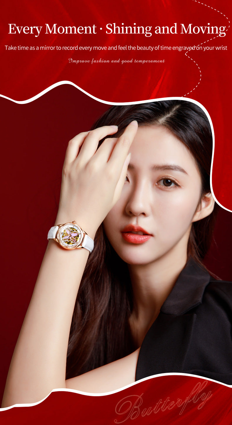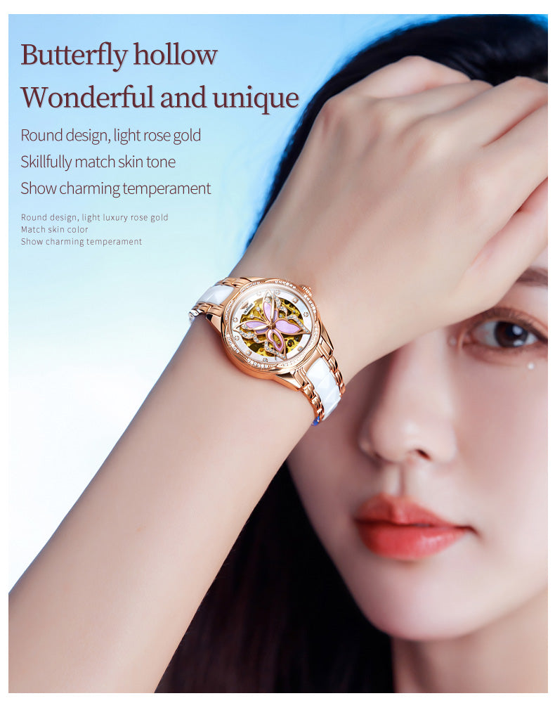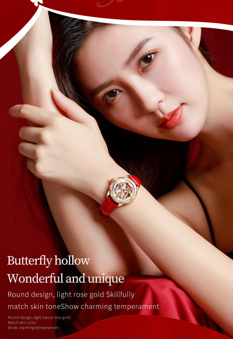 Butterfly Pattern Fashion Hollowed-out Mechanical Waterproof Watch Women's Watches