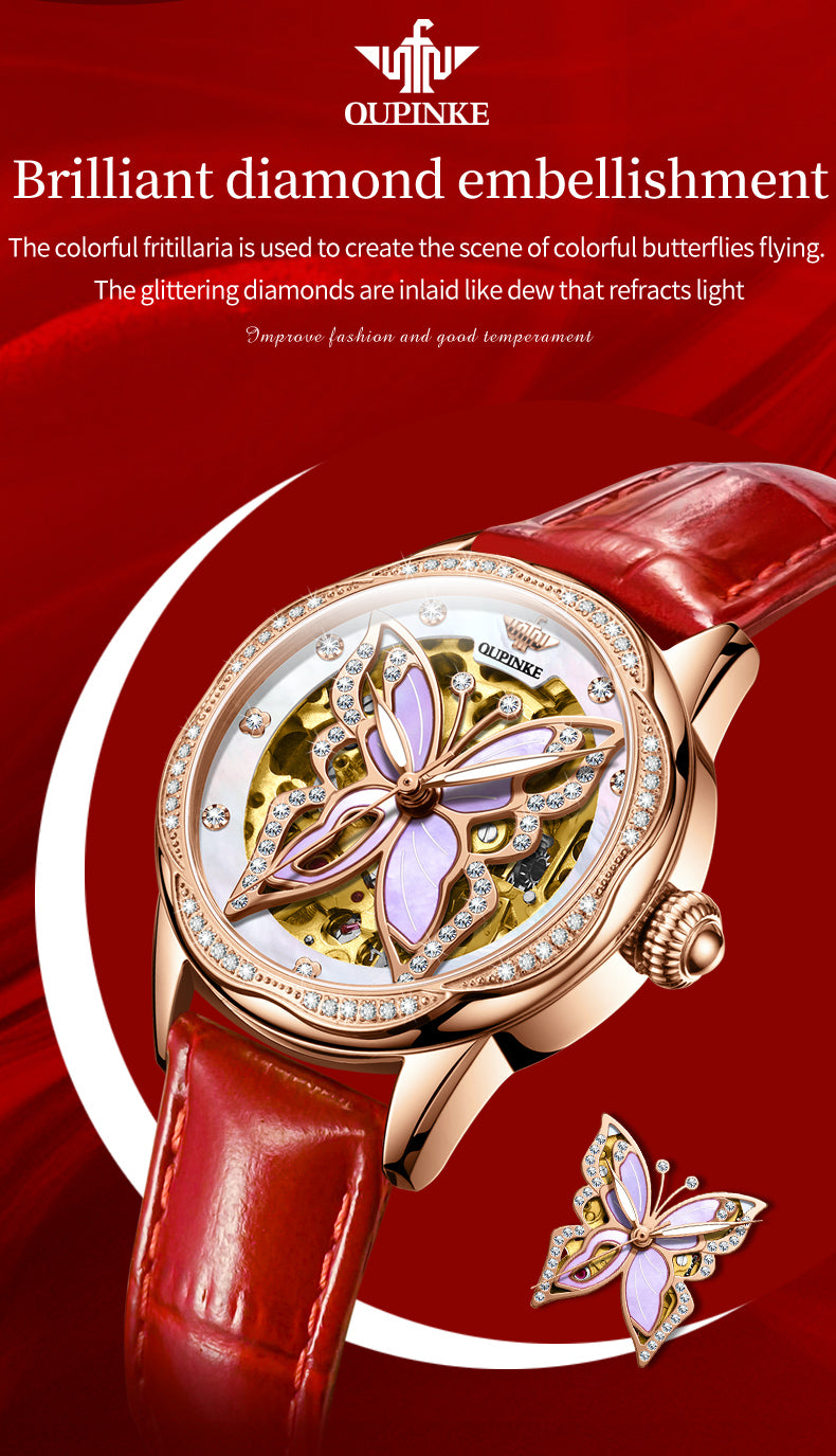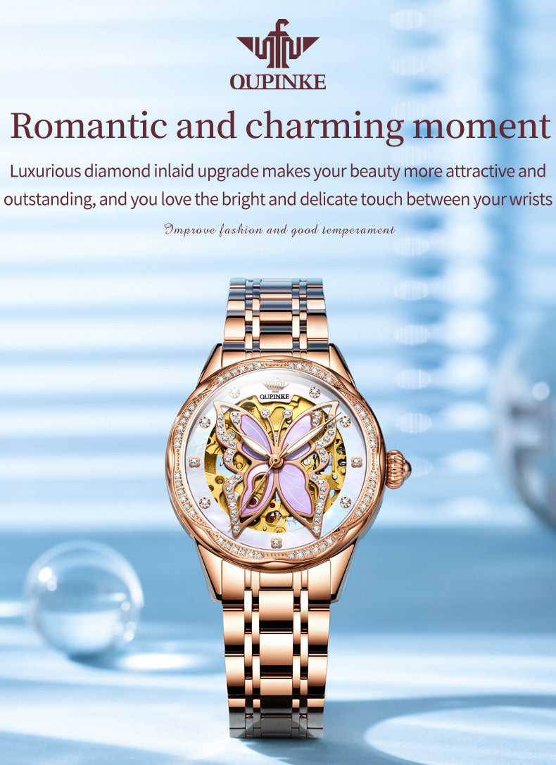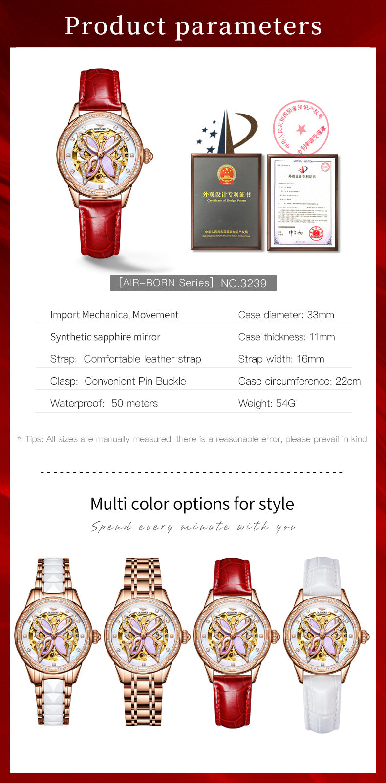 Butterfly Pattern Fashion Hollowed-out Mechanical Waterproof Watch Women's Watches