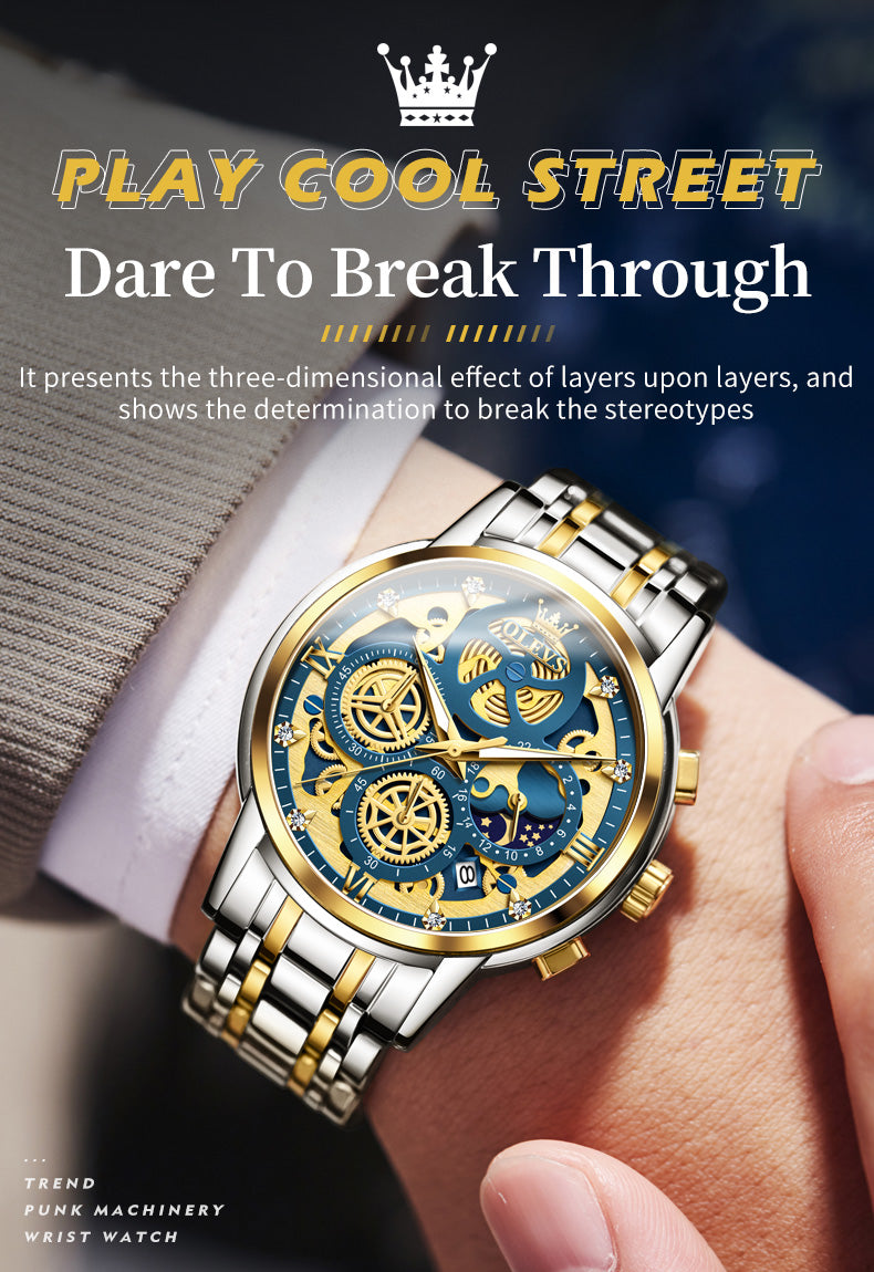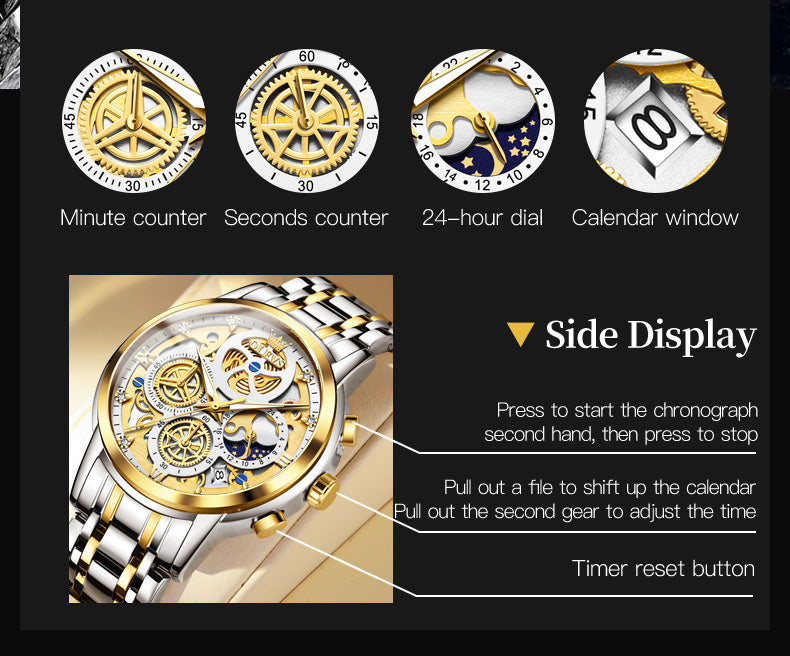 Calendar Hollow Dial Quartz Watch Men's Watch