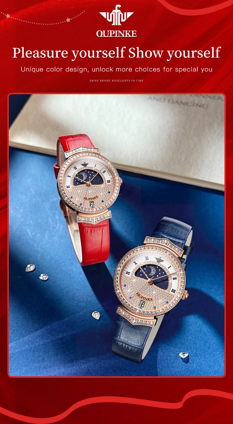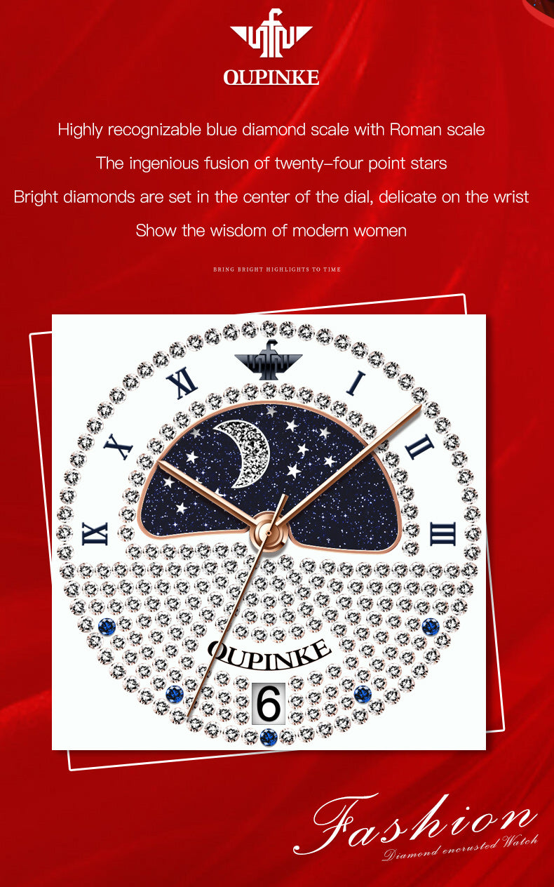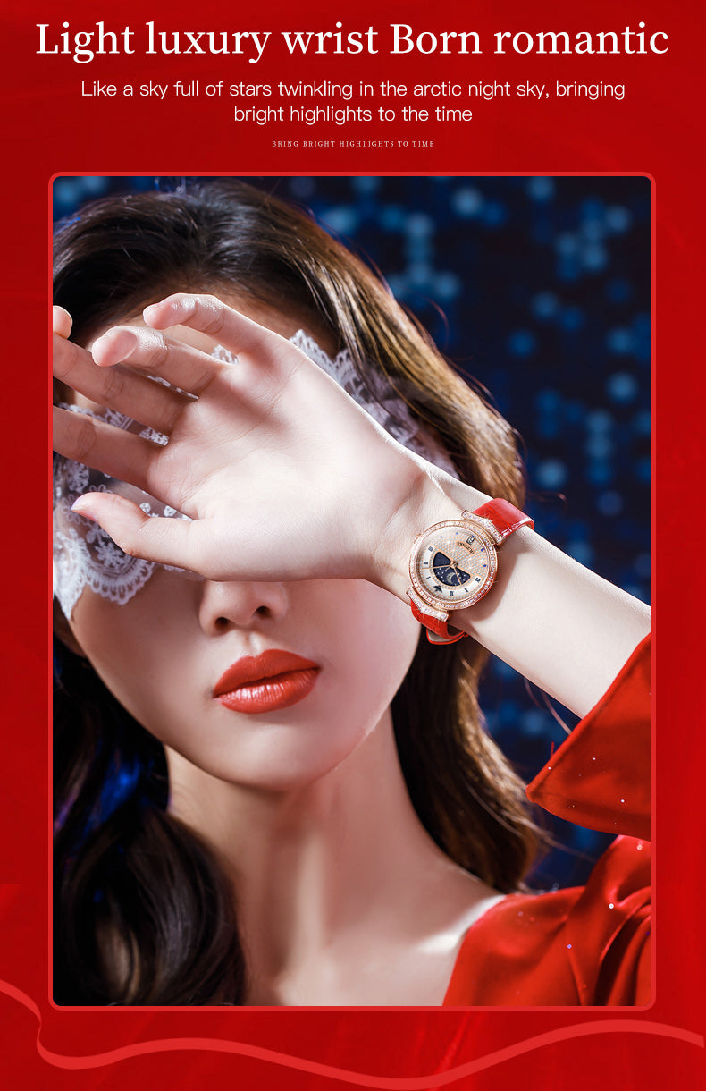Full Star Moon Calendar Waterproof Quartz Ladies Watch