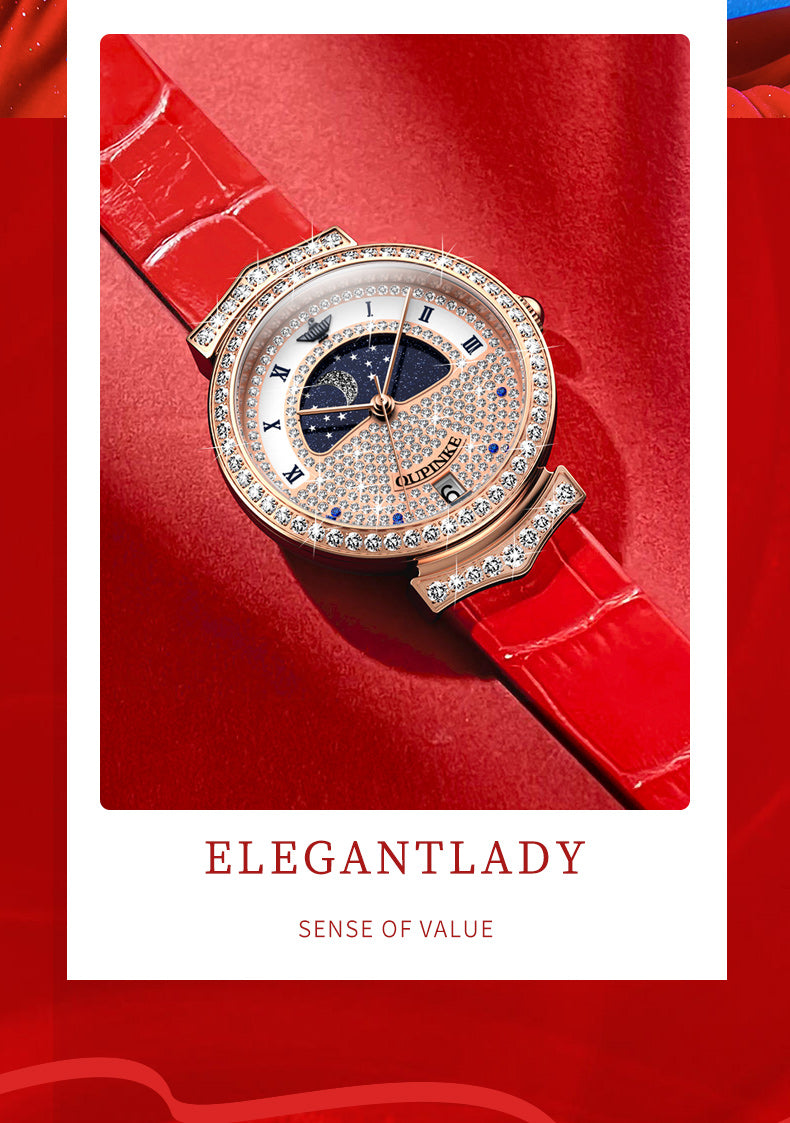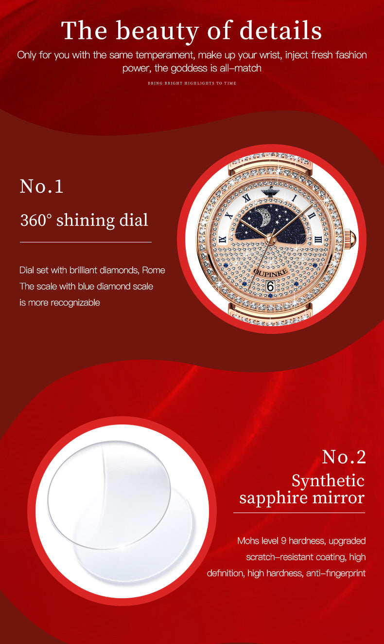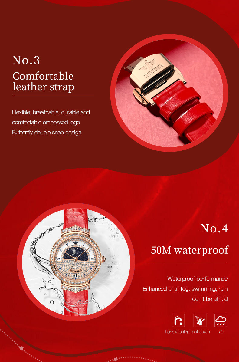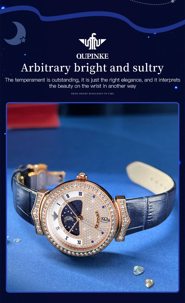 Full Star Moon Calendar Waterproof Quartz Ladies Watch