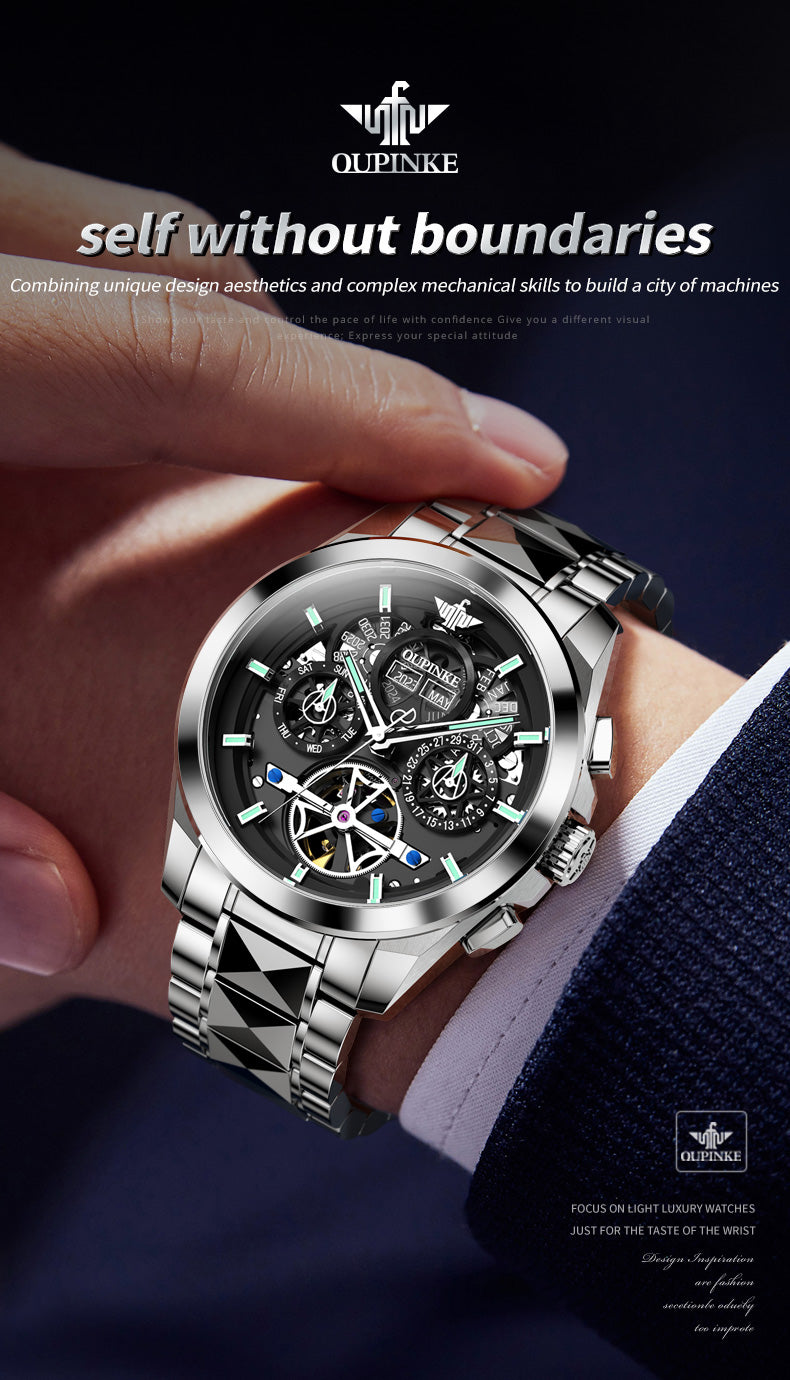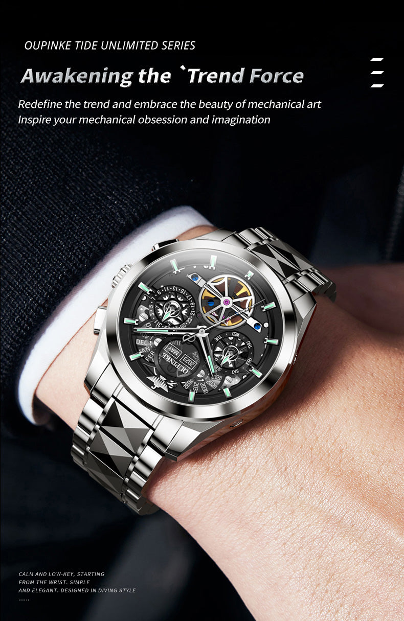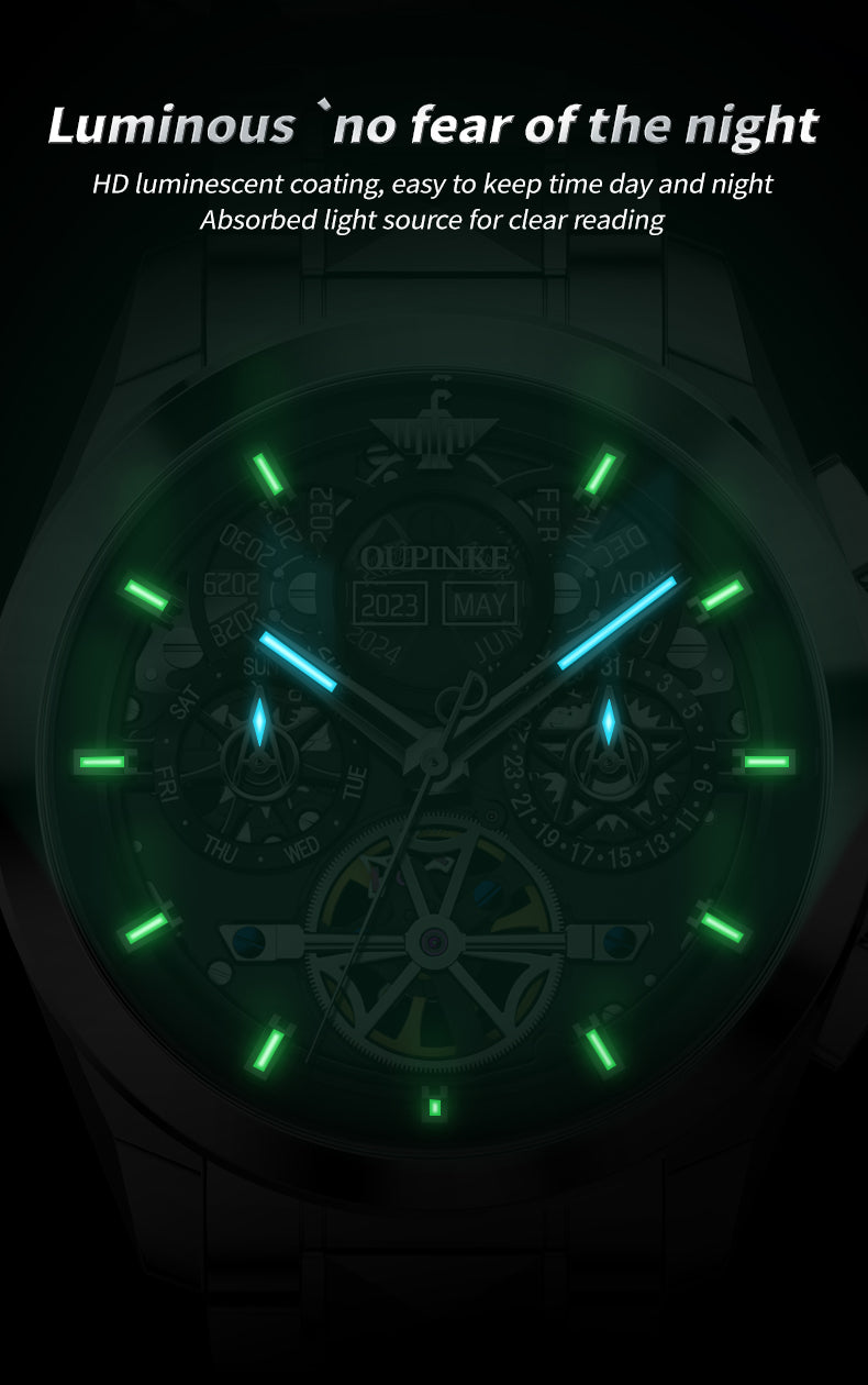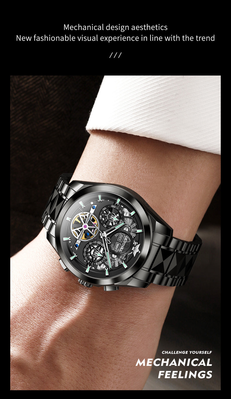 Multi-layer Hollow Movement Multi-functional Waterproof Luminous Mechanical Watch Men's Watch