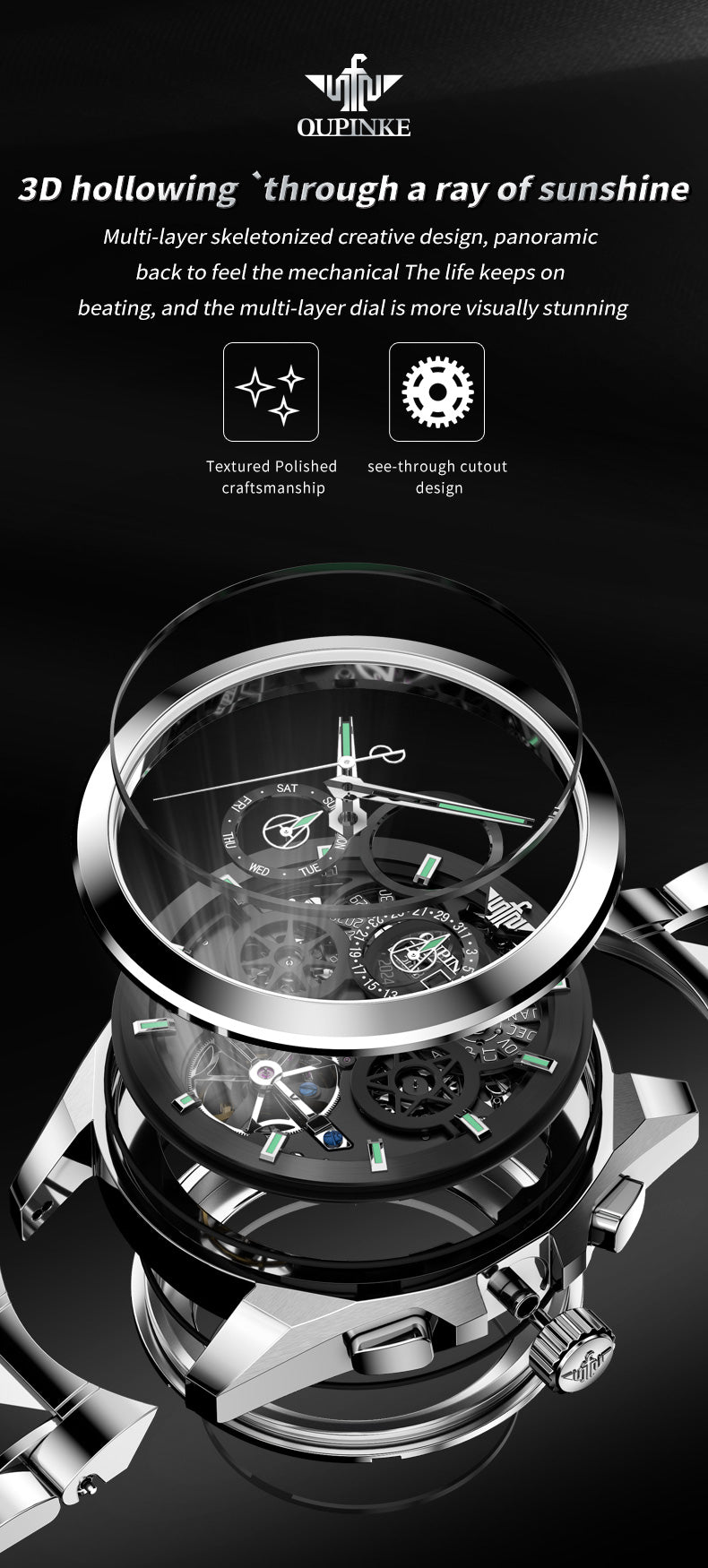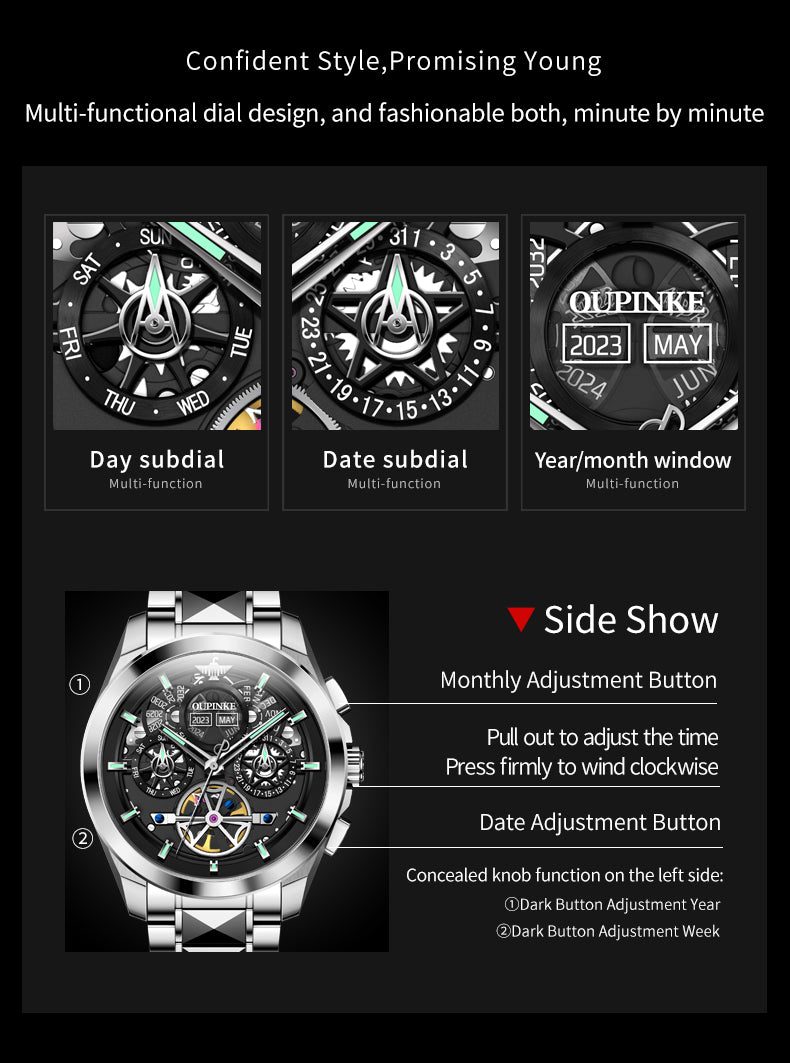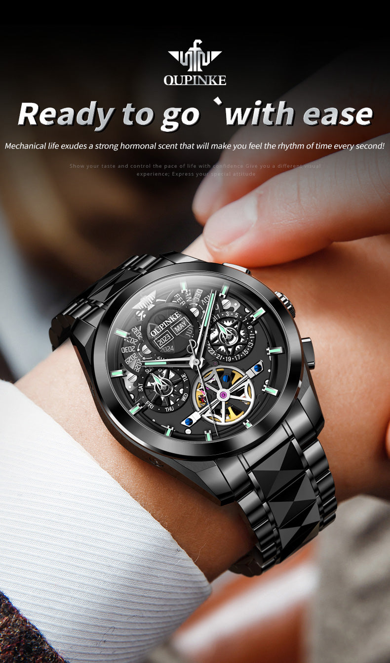 Multi-layer Hollow Movement Multi-functional Waterproof Luminous Mechanical Watch Men's Watch